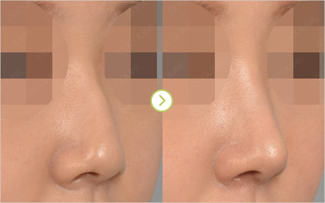 In this case, the bridge of nose is not straight and bent to one side. Various kinds of factors can contribute to this case and perfect correction can be done with precise diagnosis and suitable surgery. In addition, this kind of deviated nose is often accompanied by the deviated nasal septum which can cause nasal congestion and the deviated nasal septum is likely to be a determining cause, which makes the correction of deviated nose necessary to correct the deviated nose and nasal congestion. So, the correction of deviated nose is said to be the operation with higher difficulty among rhinoplasty surgery.