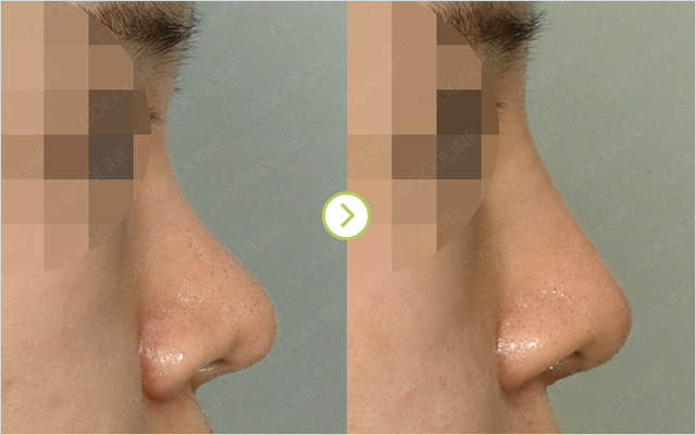 - 코끝: 자신의 비중격 연골을 사용하여 코끝에 튼튼한 지지구조를 만들고 이와 함께 코끝의 각도와 높이를 올려주게 됩니다. 간혹 연골의 양이 모자를 경우 귀연골을 일부 사용할 수 있습니다.