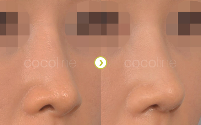 코가 넓은 경우 콧대 모양을 만들기 위해 코뼈를 좁히지 않고 콧대를 높이거나, 매부리를 제거하지 않고 실리콘을 넣어 메부리를 가린 경우에는 콧대가 너무 높아지게 됩니다. 이렇게 되면 얼굴에 비해 코가 너무 커지고 코가 이마에서 바로 시작하는 느낌이 되어 인상이 사나와 보이게 됩니다.